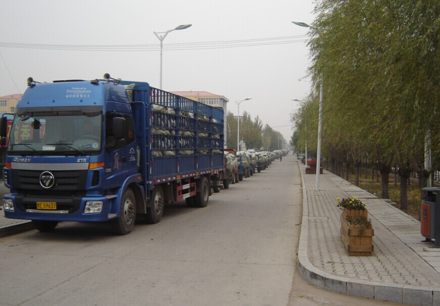 圖為井然有序的售糧車隊 馬志剛(攝)