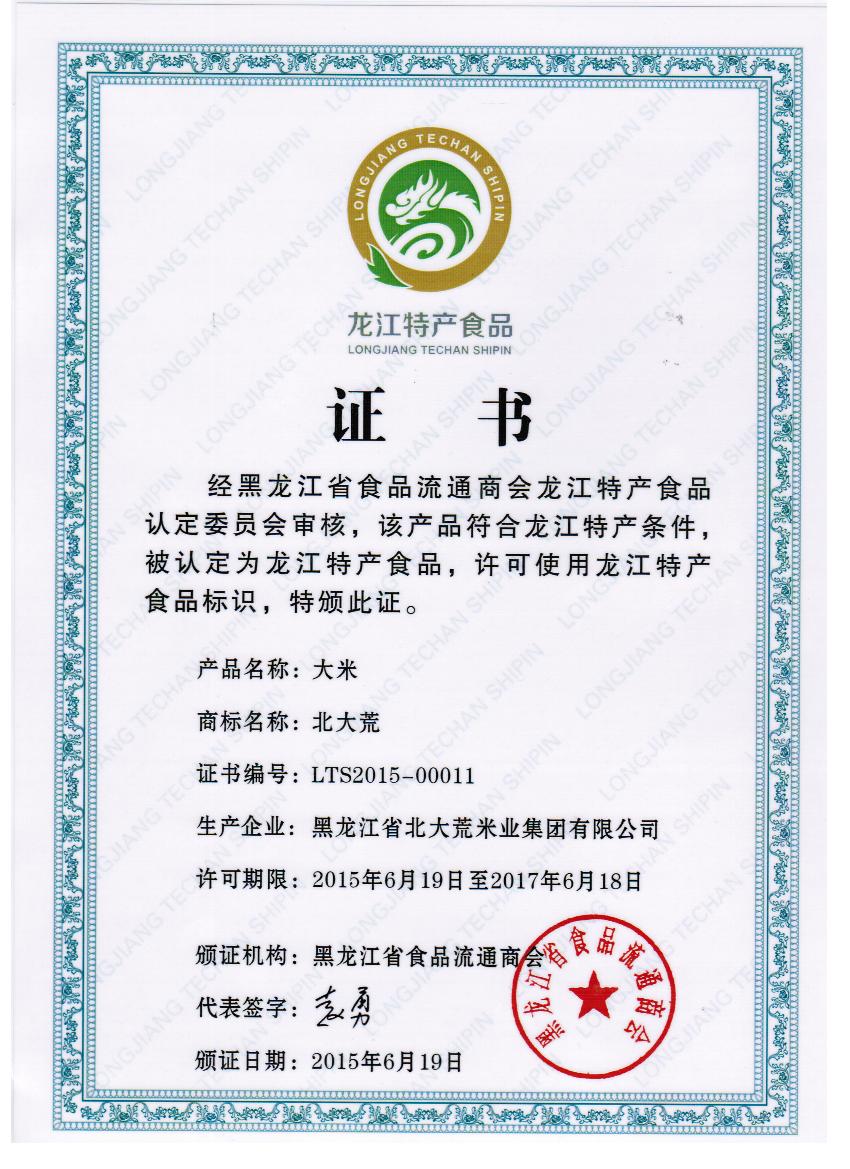北大荒米業榮獲首批龍江特產食品專用標識黑龍江省食品流通商會龍江特產食品認定工作會議在和平邨賓館舉行。黑龍江北大荒米業集團有限公司大米系列產品被認定為首批“龍江特產食品”,并獲得了“龍江特產食品”專用標識的許可使用證書。對獲得龍江特產食品認定的企業頒發標識牌和龍江特產食品專用標識許可使用證書(有效期二年),并報省商務廳備案。 為加快落實省領導“轉變經濟發展方式,依托優勢資源發展特色經濟”的指示精神,更好地保護黑龍江省特產食品品牌,推廣龍江特產食品品牌形象,提高我省特產食品的市場占有率和競爭力,推動龍江特產食品企業創新發展,黑龍江省食品流通商會根據黑龍江省商務廳的工作指導意見,在全省范圍內開展了龍江特產食品認定工作。 獲得“龍江特產食品”的企業或品牌按《“龍江特產食品”標識使用規定》可以在相應產品或包裝、裝潢、說明書、廣告宣傳及互聯網等媒介中使用專用的“龍江特產食品”標識。 “龍江特產食品”標識已在國家商標局注冊。屬黑龍江食品流通商會所有,現授權給我公司使用。分子公司,制米廠如有需要,請聯系研發部進行辦理。