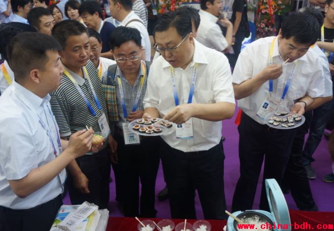 本次展會(huì)由米業(yè)集團(tuán)吉林公司承辦,在開幕的第一天,米業(yè)展區(qū)儼然成為一間百姓家中的廚房,吉林公司副總經(jīng)理謝連云親自用北大荒自產(chǎn)的秋田小町大米做成壽司,以供前來(lái)參觀的國(guó)內(nèi)外消費(fèi)者品鑒。同時(shí)在吉林公司總經(jīng)理孟凡軍帶領(lǐng)下,推出的特色產(chǎn)品還有北大荒集團(tuán)新品大米面條,現(xiàn)場(chǎng)冷水下鍋,出鍋后分別做成冷面和拌面,深受廣大中外參展人員的喜愛。營(yíng)銷部部長(zhǎng)李丹峰也一直忙碌在展會(huì)現(xiàn)場(chǎng)洽談銷售。