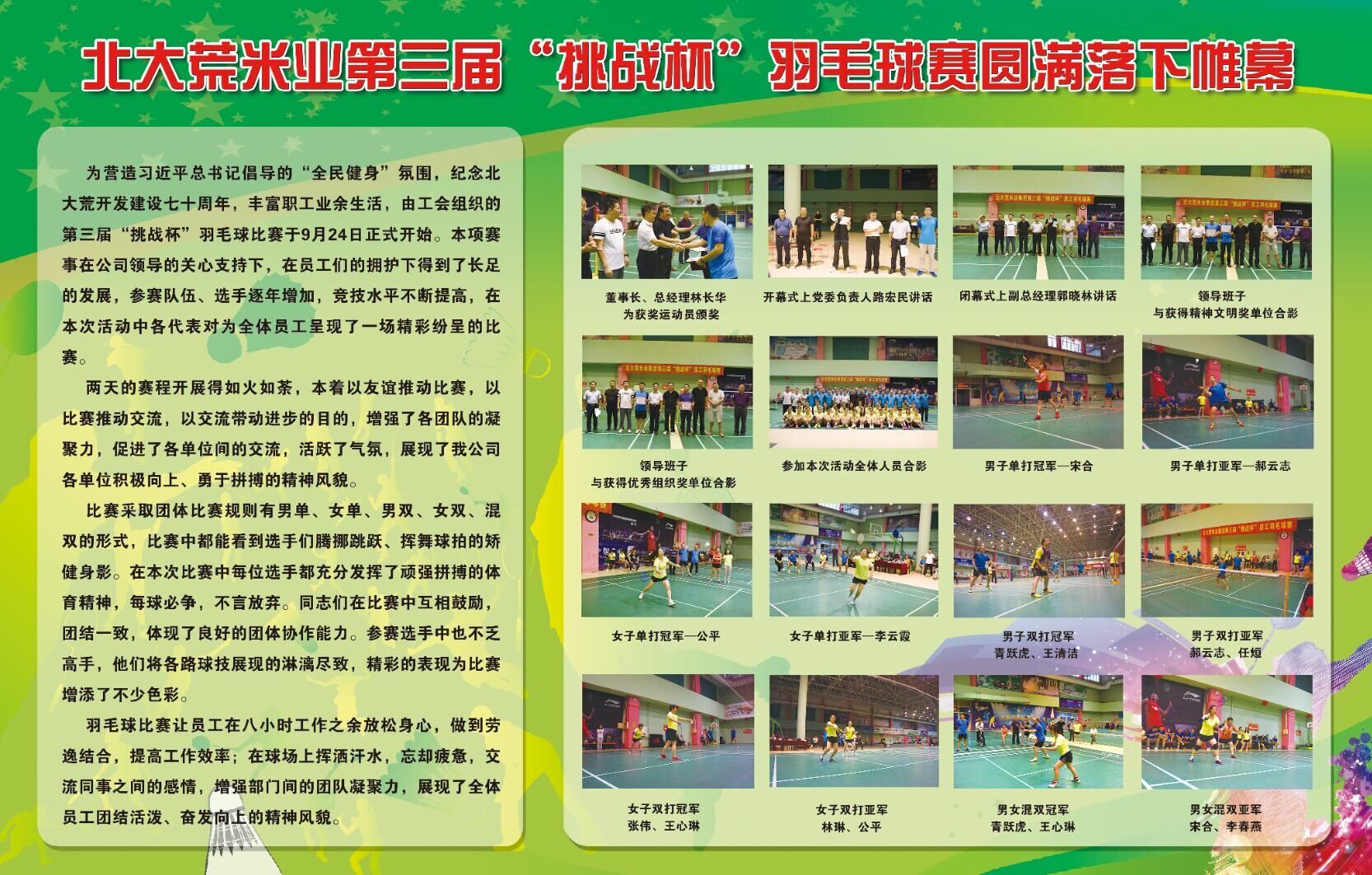 北大荒米業第三屆“挑戰杯”羽毛球賽圓滿落下帷幕